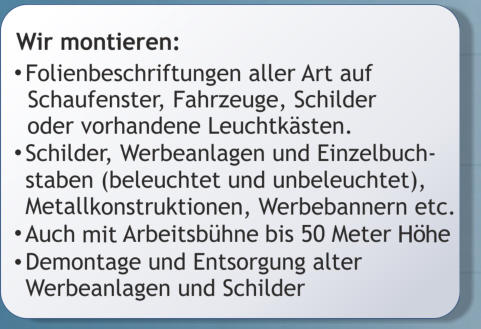 Dies gilt für Leuchtreklamen aller Art, Ausleger und Schilder,